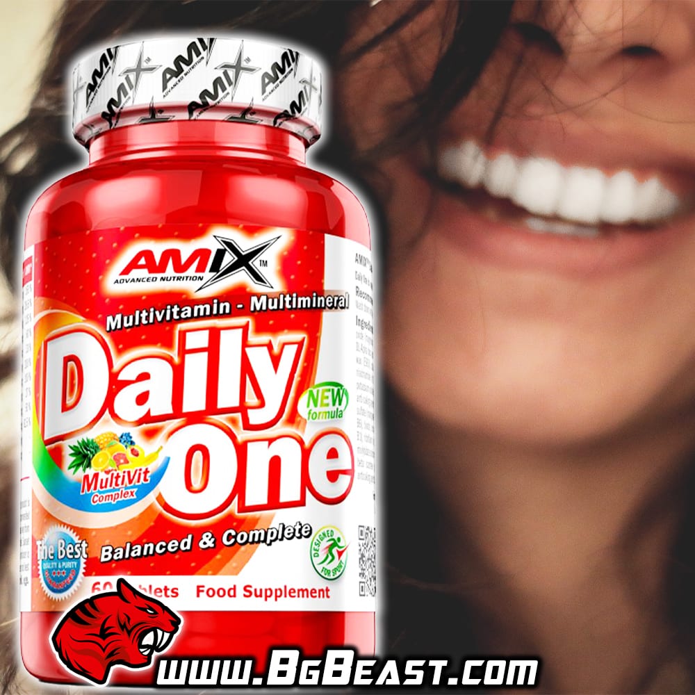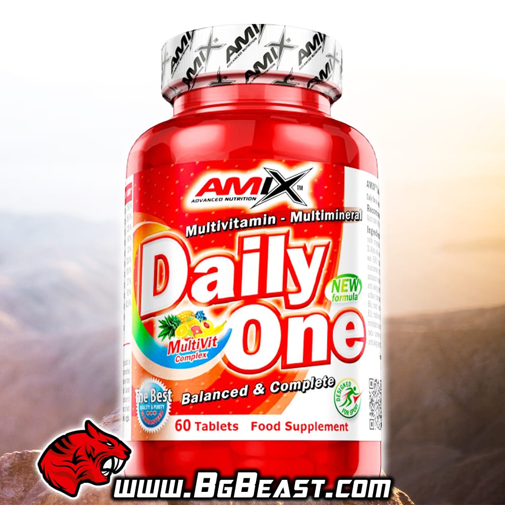 Витамините са нещо, което би се интегрирало блестящо в хранителния режим на всеки – било то трениращ или не трениращ човек. Специално AMIX Daily One е обогатяващ комплекс витамини, минерали и други полезни примеси, които са смесени в такъв коктейл, че всеки компонент е добавен в точно необходимото количество, подходящо за дневна доза за един възрастен човек.