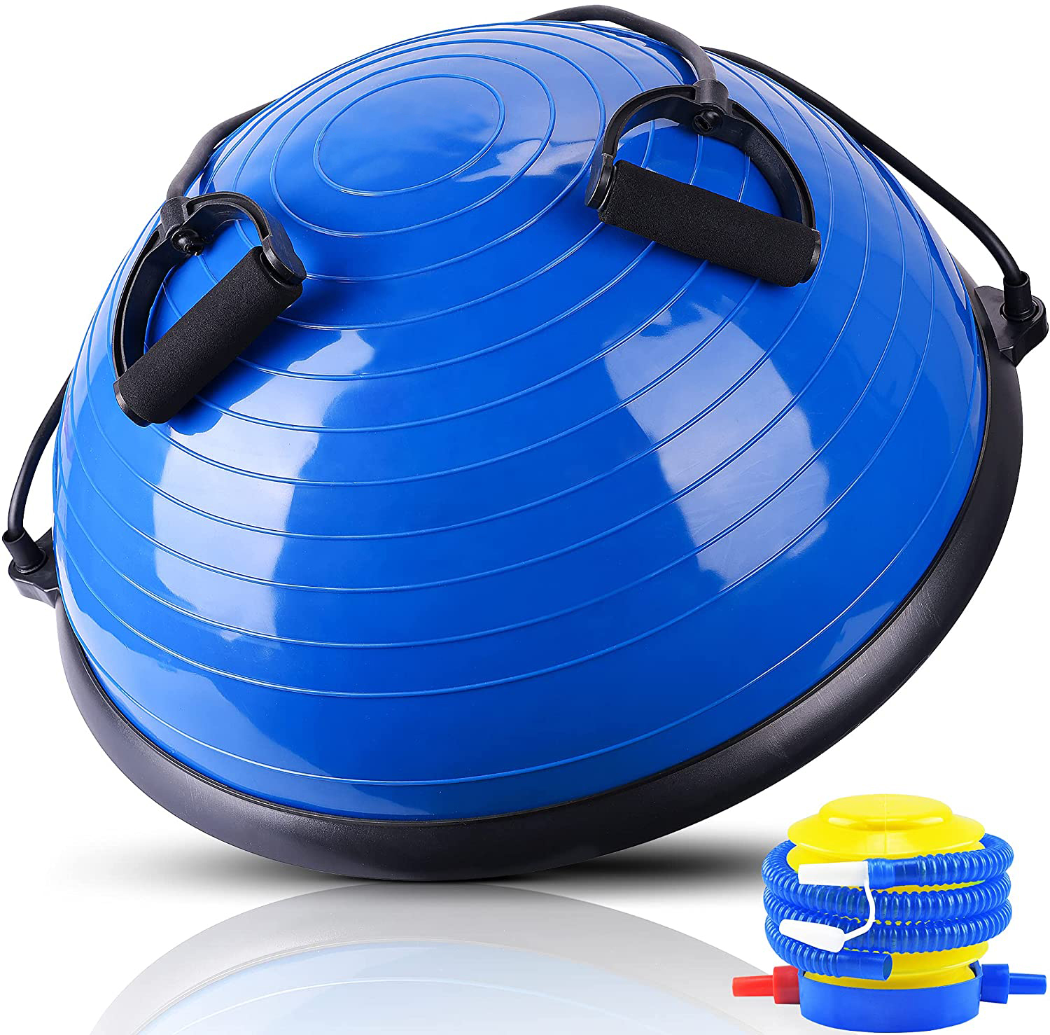 ✔ СИГУРНОСТ И ЗДРАВИНА: Топката за баланс с ластици е направена от мек ПВЦ материал, който няма лоша миризма, както имат повечето босу топки! Тя е напълно безвредна, екологична и издръжлива, като товароносимостта ѝ е до 200 кг! Комплектът съдържа и помпа за напомпване на топката.