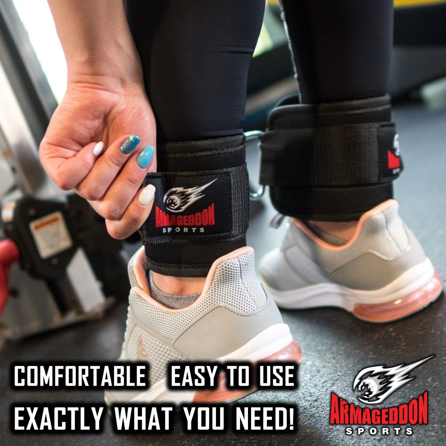 ✔ БЪДИ ГОТОВ ДА ОТКЛЮЧИШ СИЛАТА В КРАКАТА СИ: Наглезенки за фитнес на Armageddon Sports са създадени перфектно за всякакви упражнения за тонизиране на мускулите и оформяне на краката Ви! Заедно с 2те железни халки под формата на „D“, каишката за глезен се прикрепя здраво за Вас и към всеки фитнес уред с кабел.