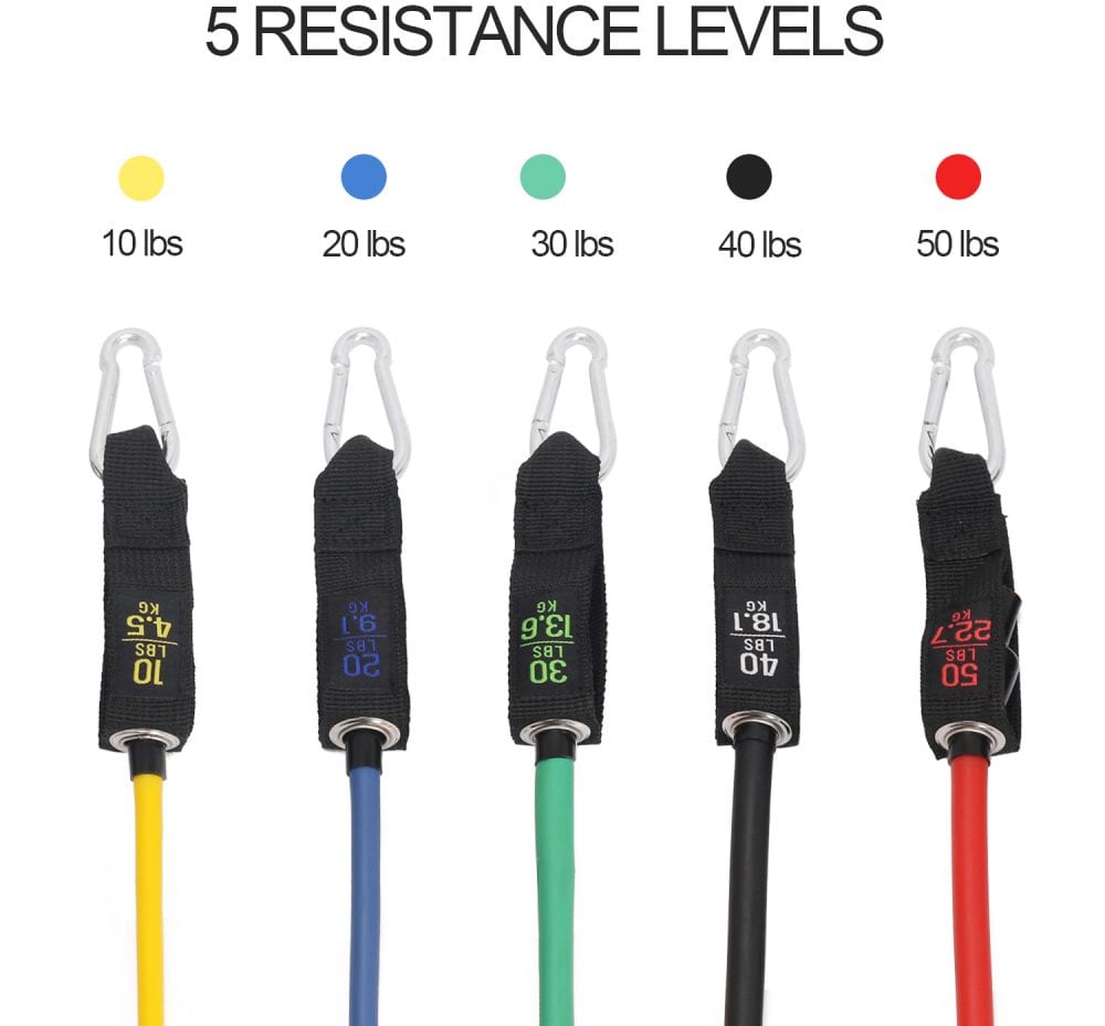✔ 11 ЧАСТИ ПРОФЕСИОНАЛЕН КОМПЛЕКТ ЗА ТРЕНИРАНЕ: Тренировъчните ластици за тренировка включват: