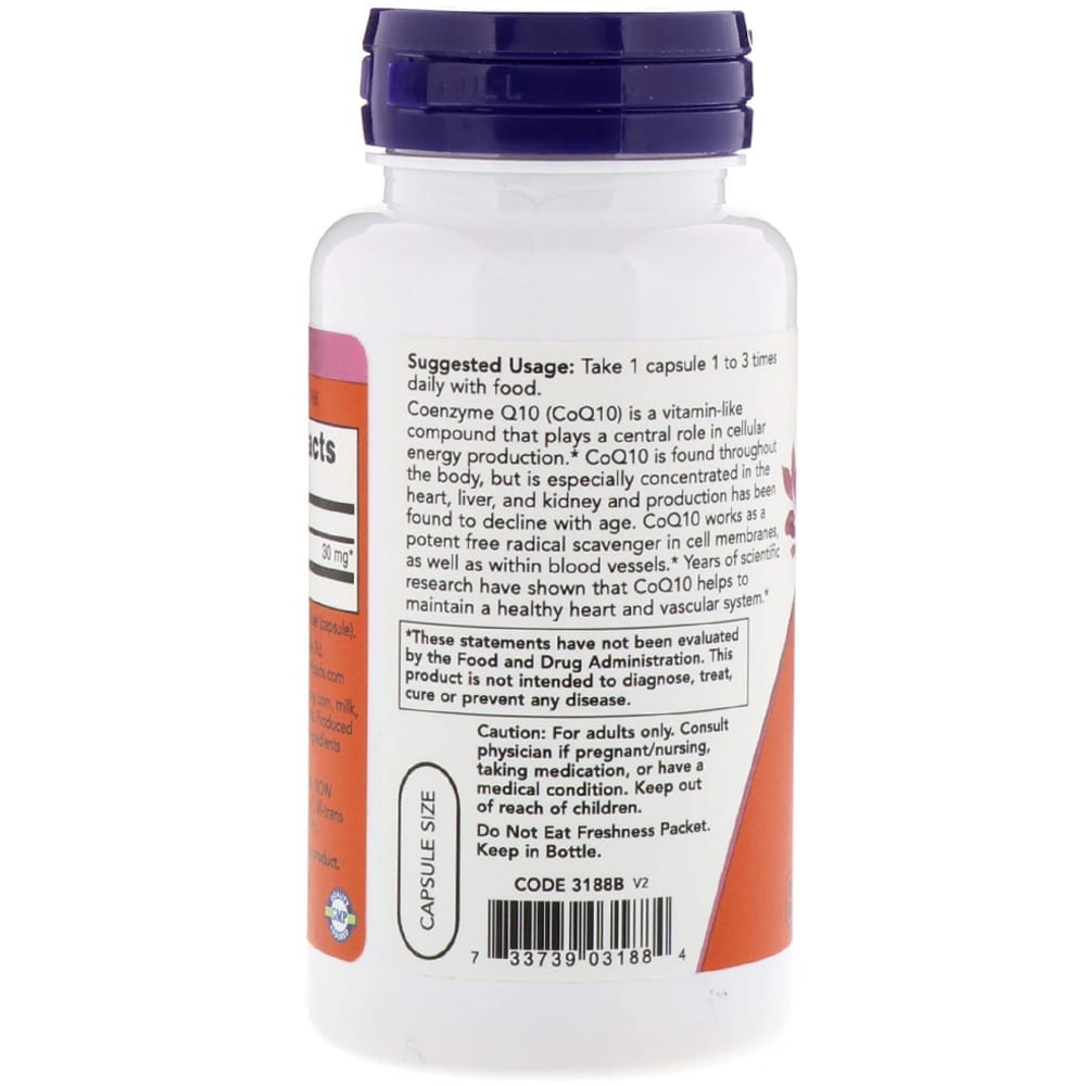 - NOW CoQ10 30 мг подпомага успешното преобразуване на енергията от храната.