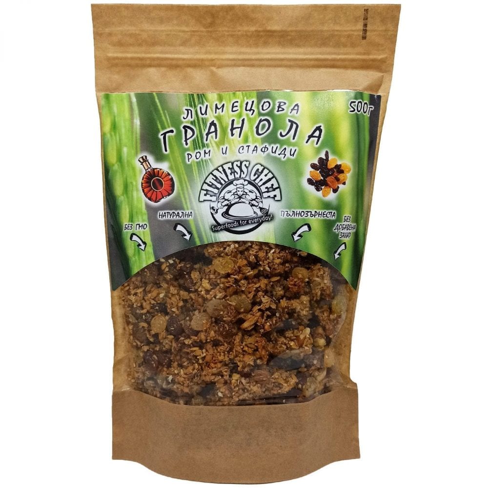 🥃 Зърнена Закуска Гранола Fitness Chef, ром и стафиди, 500 гр 🍇