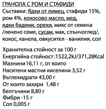 С риск да остане нещо неизказано, представянето на този продукт ще завърши с това, че вкусът му е уникален. Комбинацията между вкусовете на ром и стафиди го прави интересен и изключителен за всеки!